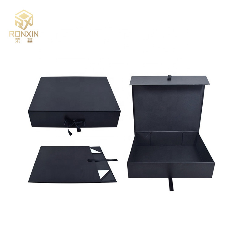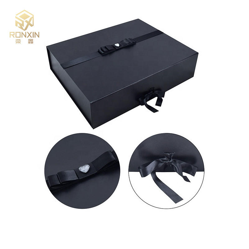 Hediye Paketleme İçin Kurdeleli Siyah Karton Katlanabilir Hediye Kutuları