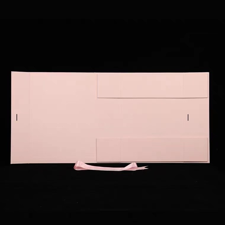 Hediye Kozmetik Ambalaj için Şerit Saplı Pembe Karton Katlanabilir Hediye Kutuları