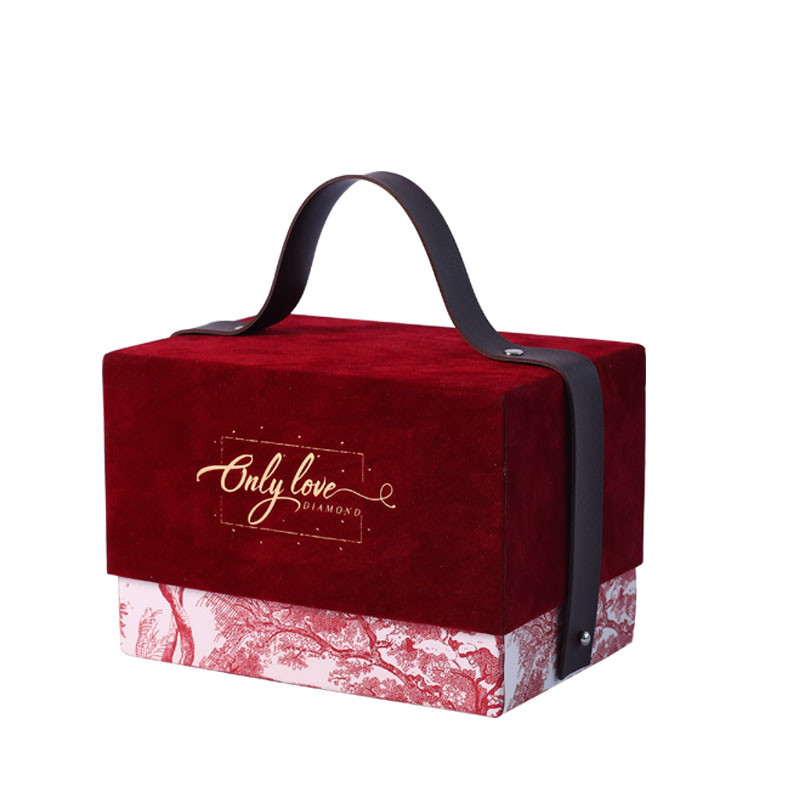 Hediye Partisi Paketi İçin Deri Saplı Kırmızı Özel Kağıt Karton Hediye Kutuları
