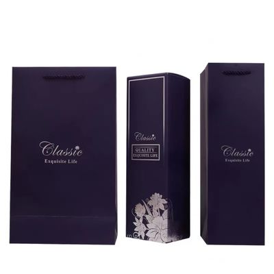 Mavi Şarap Hediye Paketleme için Şerit Baskı Logolu Kaplamalı Kağıt Katlanabilir Hediye Kutuları