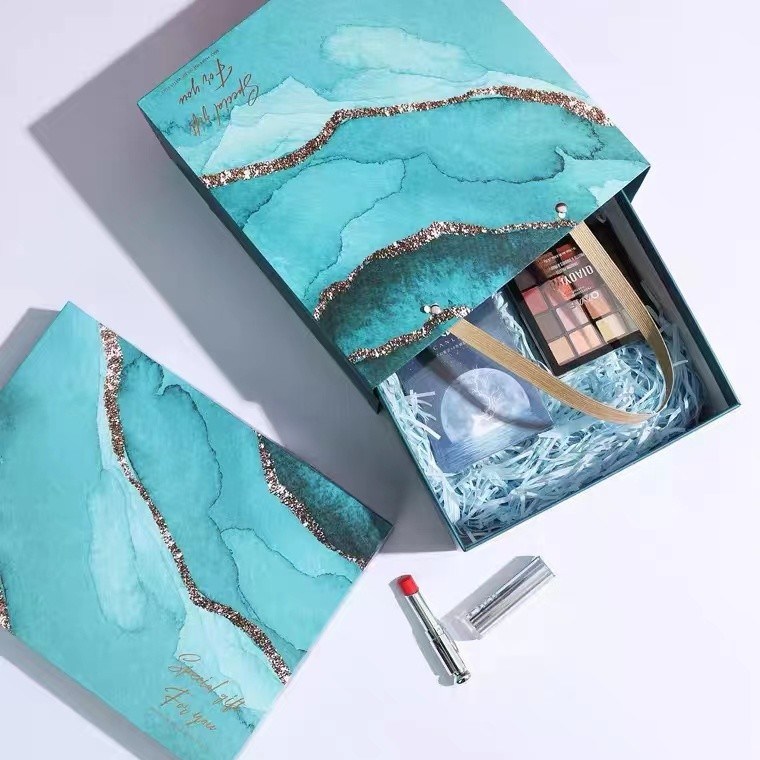 buMavi Sanat Kağıdı Karton Hediye Kutuları Özel Kağıt Ambalaj Kozmetik Hediye Paketleme için Sert Kapak ve Taban.C1Scoated kağıt veya çift kaplamalı kağıt, altın gümüş kart kağıdı, sedefli kağıt ve özel artpaper gibi farklı kağıt türlerini kullanabiliriz. Şekil katlanabilir ve nakliye avantajı ve son derece uygun olan çok yerden tasarruf sağlayabilir.