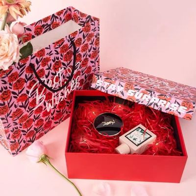 Parfüm Kozmetik Ambalaj için Kırmızı Renkli Sanat Kağıt Karton Hediye Kutuları Kapak ve Tabanlı Şekil
